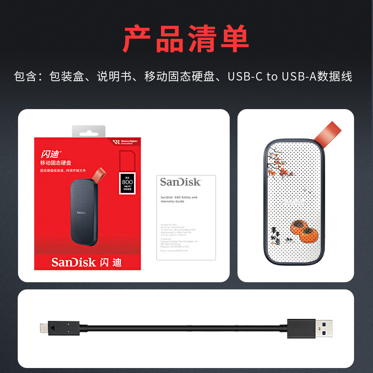 闪迪E61固态移动硬盘2t三防便携ssd外接1tb大容量手机电脑两用