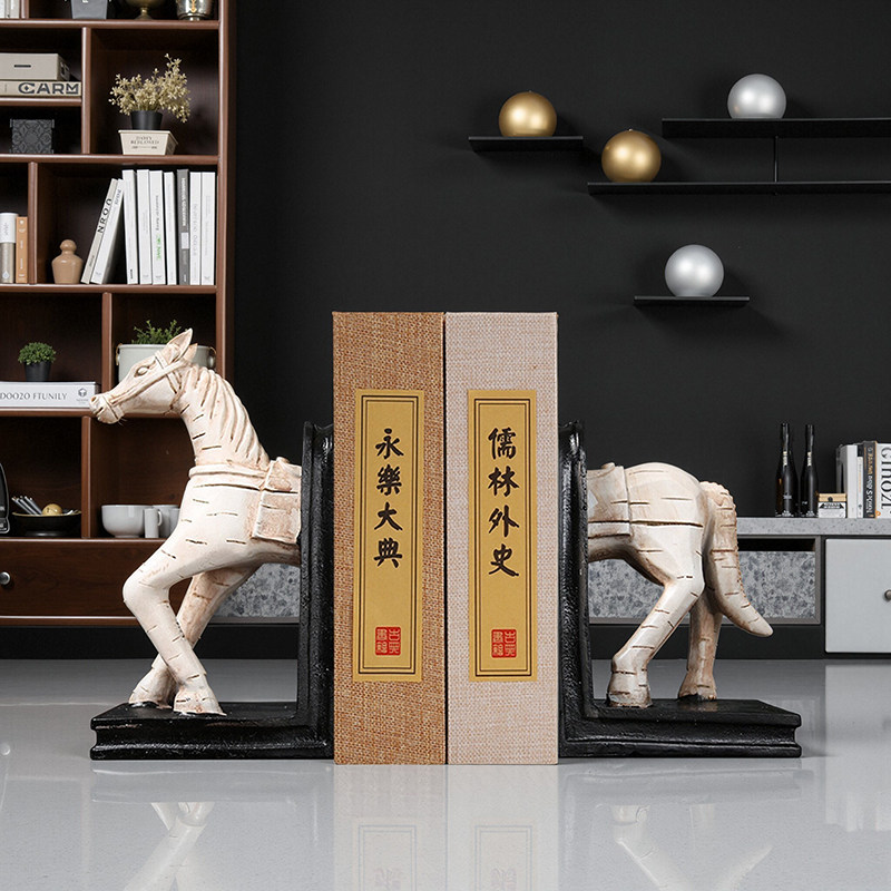 家居复古做旧马到成功书立摆件办公室书柜客厅装饰品创意书挡摆设