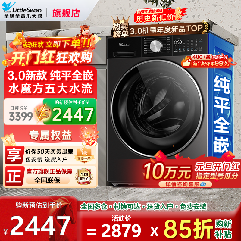 小天鹅小乌梅3.0滚筒洗衣机超薄全自动家用洗烘一体10kg官方旗舰