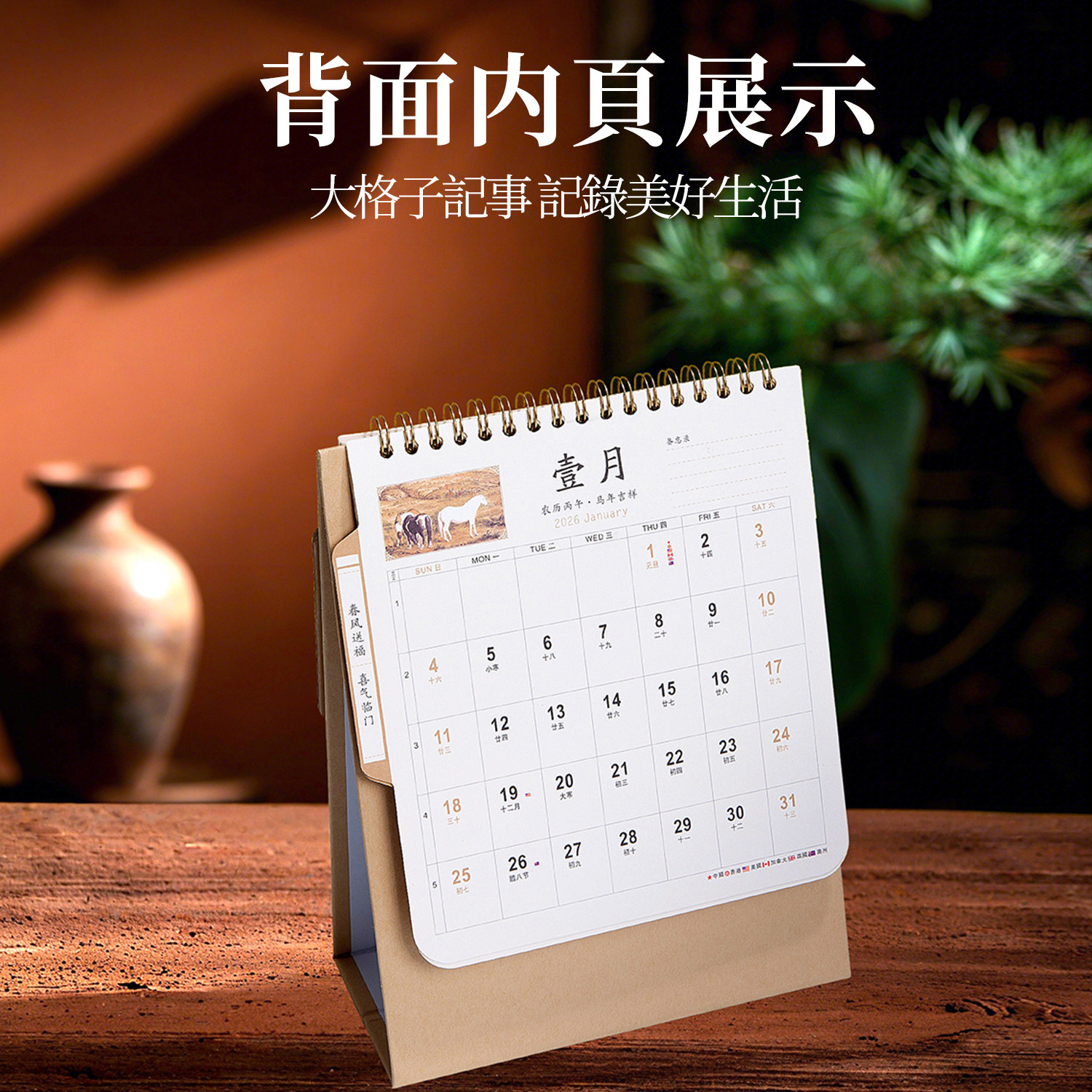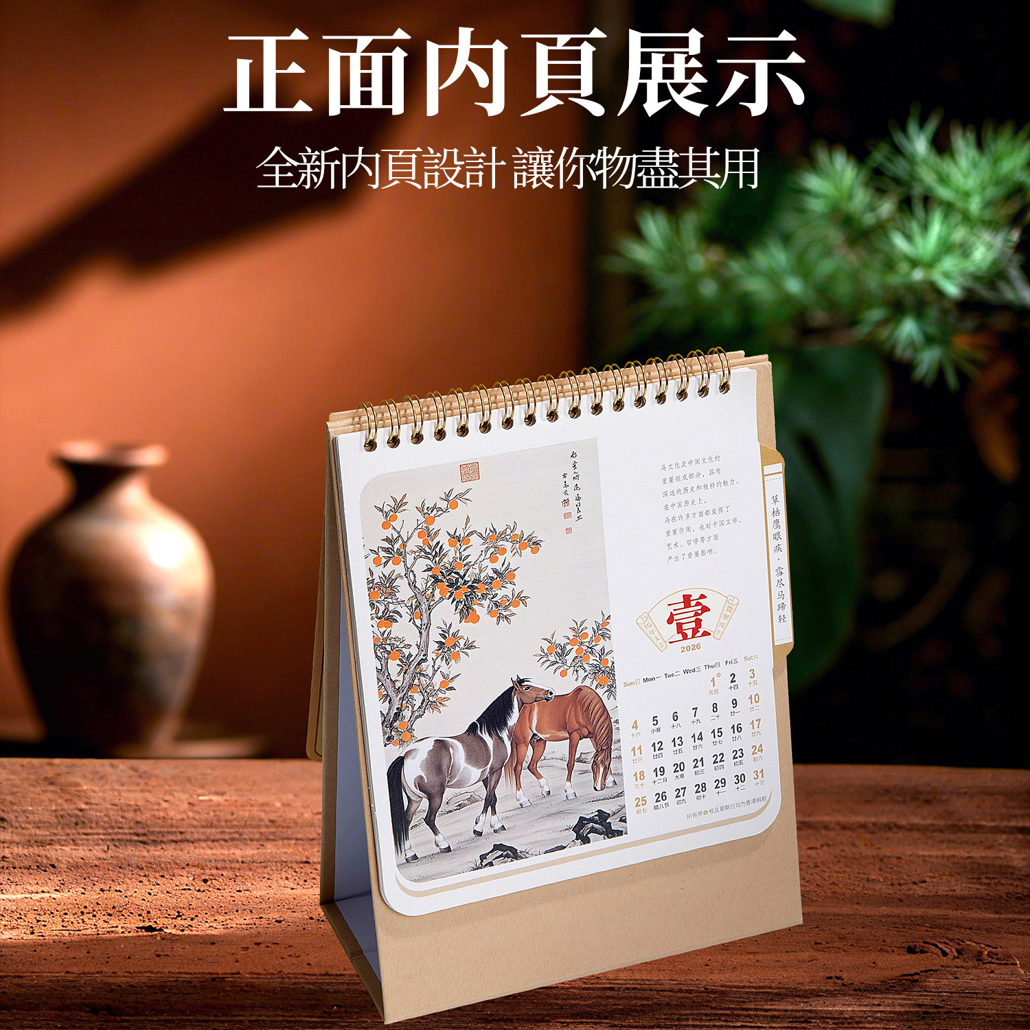 2026年台历中国风生肖红色喜庆日历定做马年商务月历摆件印刷公司企业广告定制国际假期年历烫金跨境出口外贸