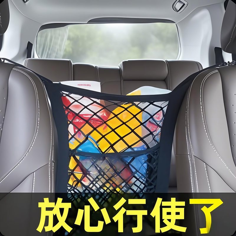汽车座椅间储物网兜车载收纳袋置物袋隔离防儿童挡弹力网中间防护