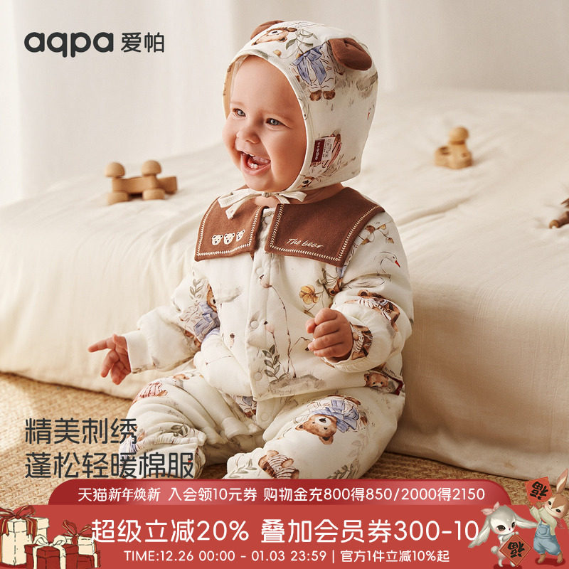 aqpa爱帕婴儿夹棉连体衣哈衣棉服保暖秋冬新生儿宝宝衣服外出服萌