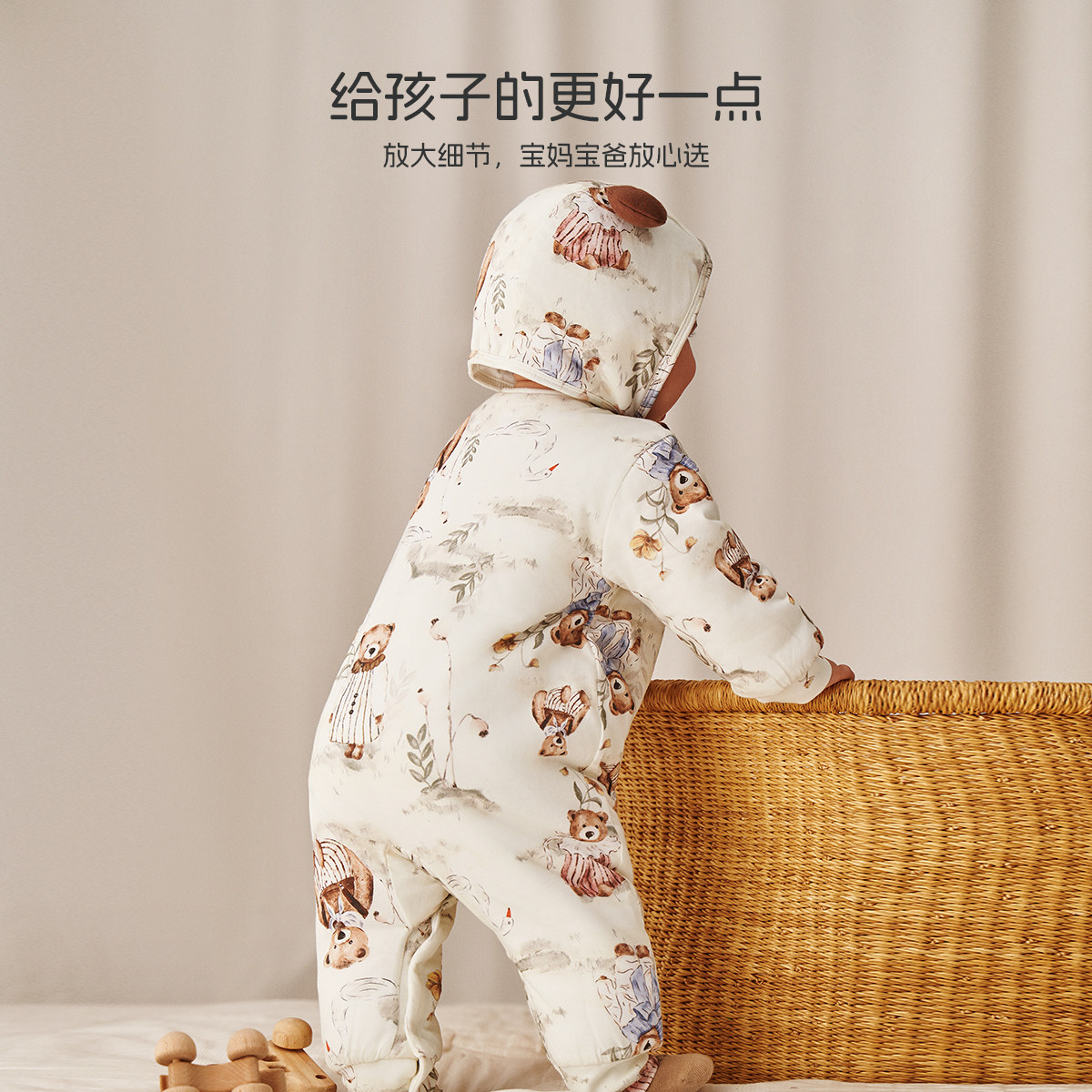 [夹棉加厚]英氏婴儿连体衣秋冬保暖新生儿冬季宝宝衣服冬新款哈衣