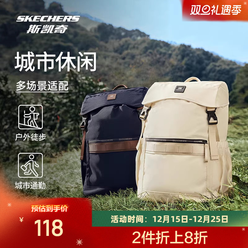 斯凯奇双肩背包男女同款降落伞包年通勤电脑包大容量户外包书包