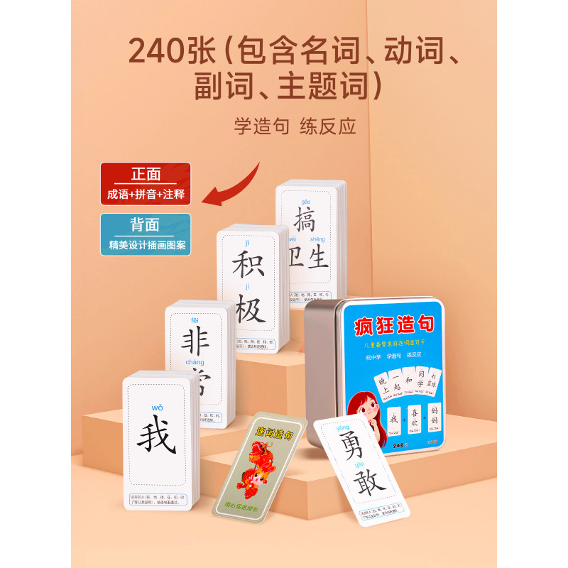疯狂造句卡牌儿童思维训练益智卡片连词成句亲子互动桌游