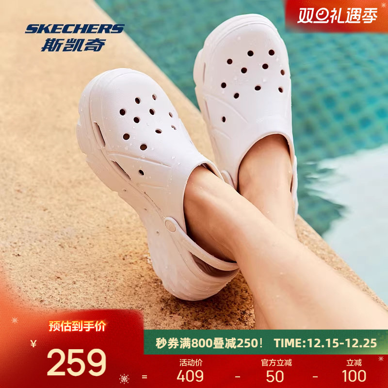 斯凯奇洞洞鞋运动凉鞋女鞋多巴胺拖鞋厚底增高轻便海边沙滩泡泡鞋