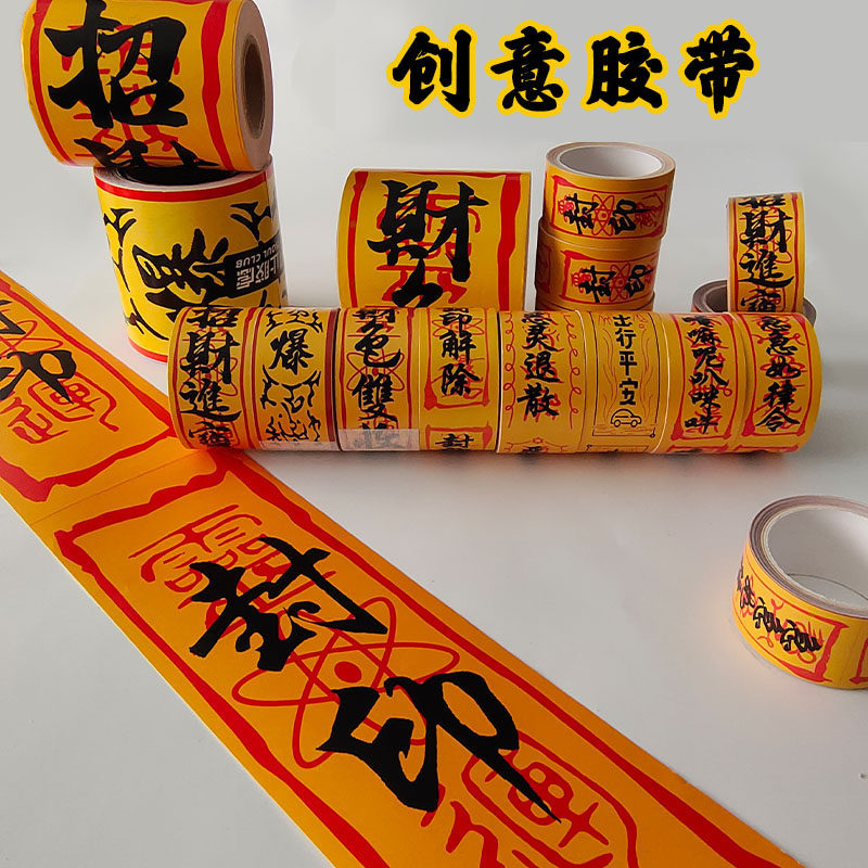中国风黄符文贴纸创意个性DIY边框装饰条电脑桌面防水胶带高粘度