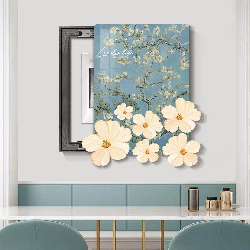 梵高莫奈艺术电表箱装饰画现代简约免打孔竖版电源箱遮挡挂画油画