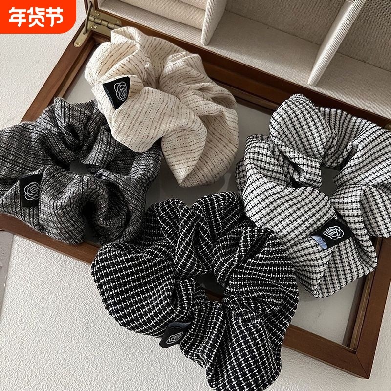 新款法式优雅气质大肠发圈复古格纹褶皱发绳韩版网红发饰女山茶花