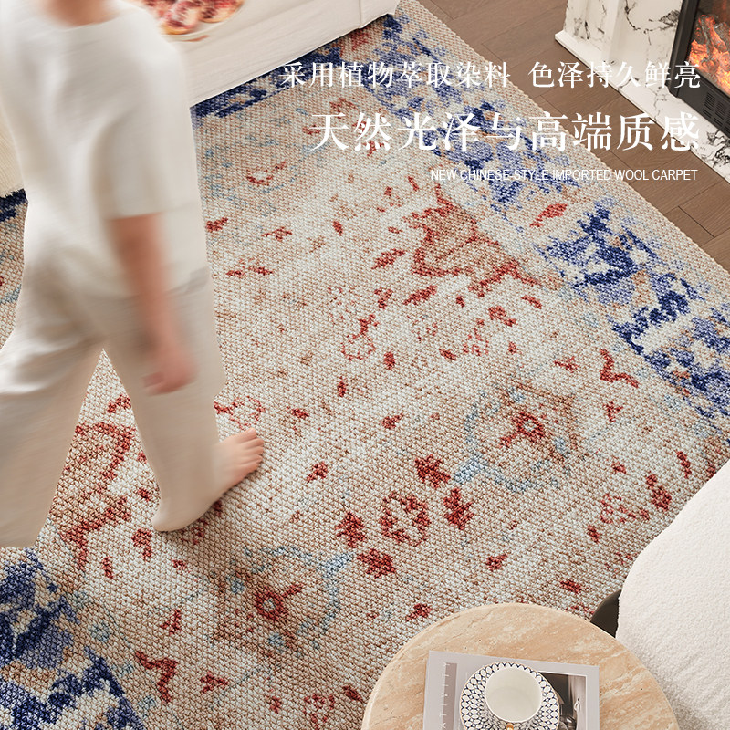 青玉海棠进口羊毛客厅地毯新中式大宅耐脏高级感卧室沙发茶几地垫