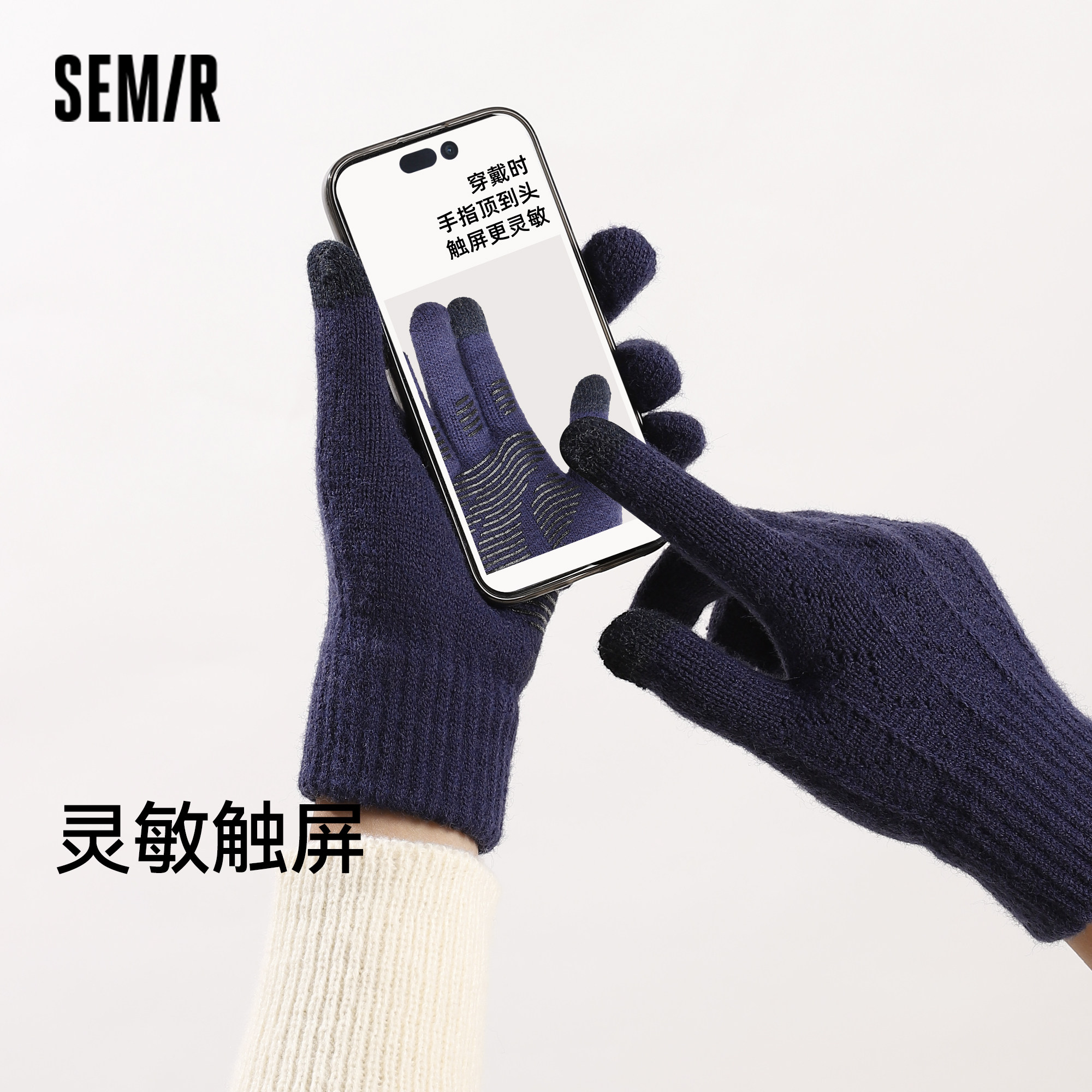 森马秋冬季保暖针织可触屏毛线手套