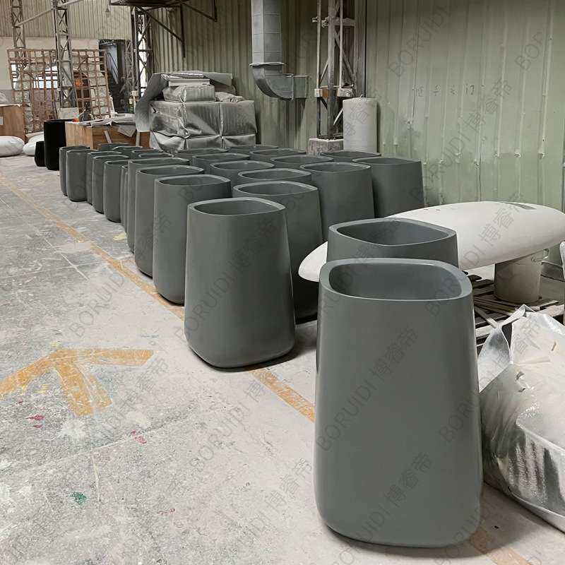 玻璃钢创意方形花盆售楼部现代简约花器公园学校GFRP花箱庭院花坛