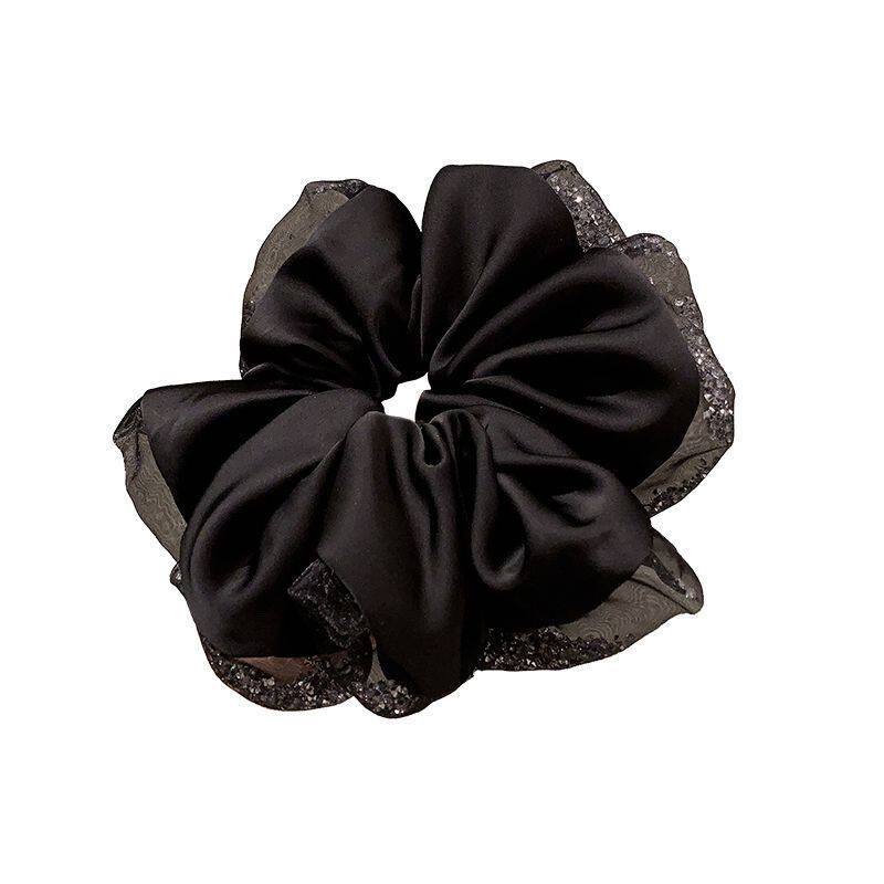 高级感水钻缎面发圈女精致气质扎低马尾大肠圈轻奢时尚发饰头花