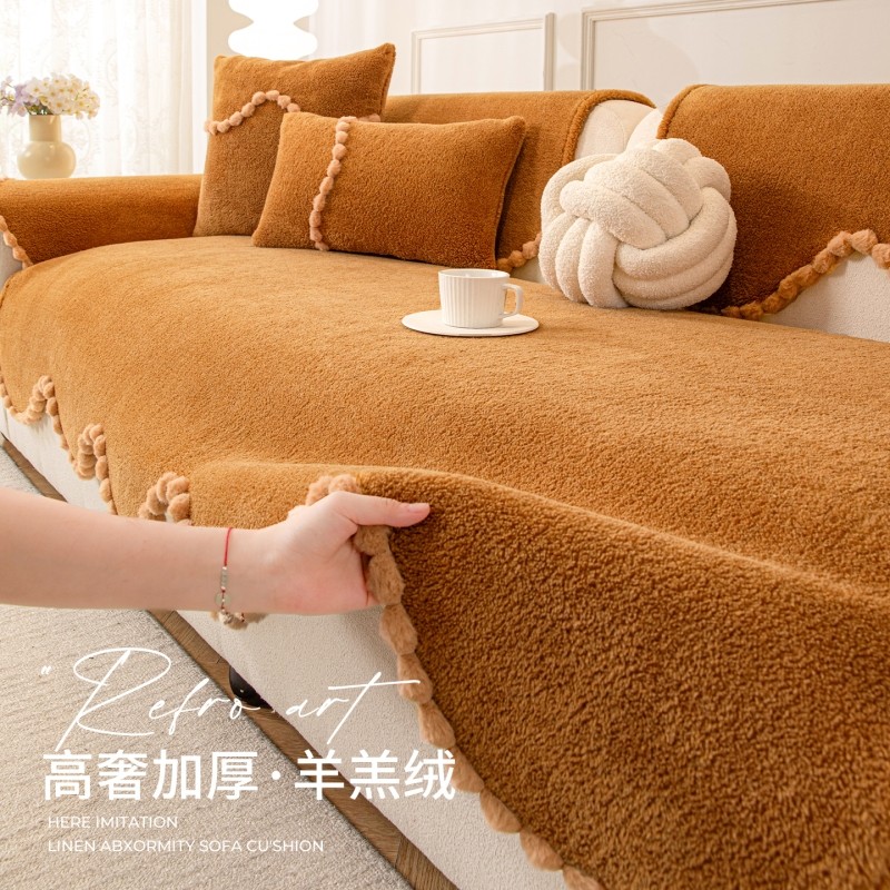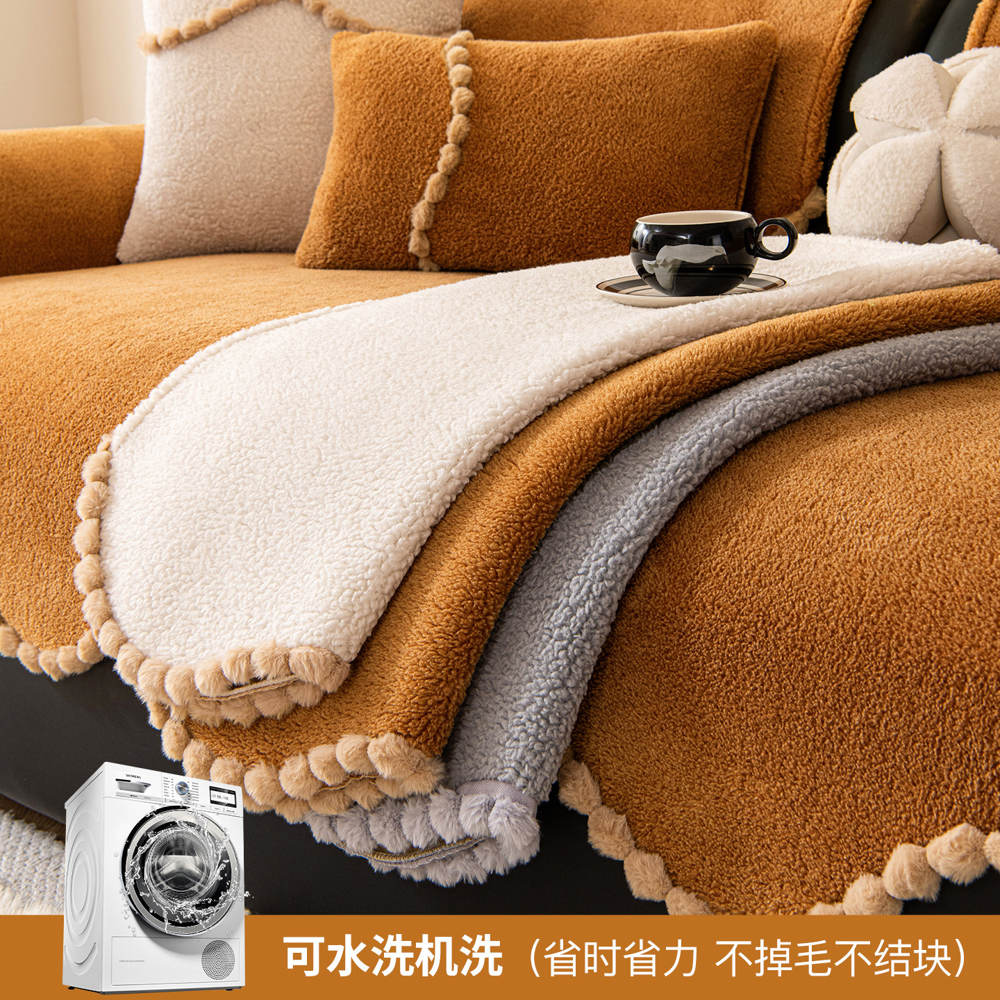 2025新款冬季毛绒沙发垫一片式固定防滑加厚保暖直排皮沙发坐垫子