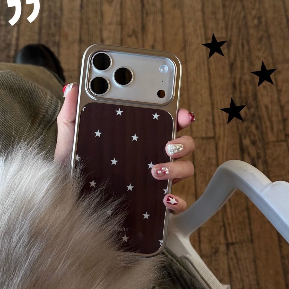 EshuRohe法式栗棕咖色星星简约苹果iPhone17手机壳16promax小众原创高级感15plus14银框亮面秋冬新款磁吸13