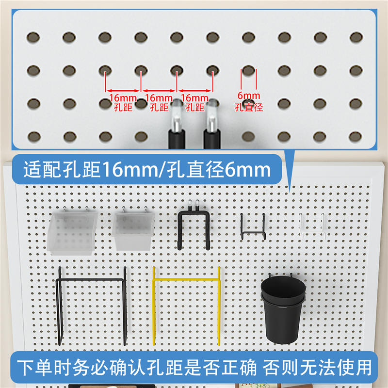 金属洞洞板通用孔距配件收纳盒超市家用置物架方孔圆孔壁挂式网篮