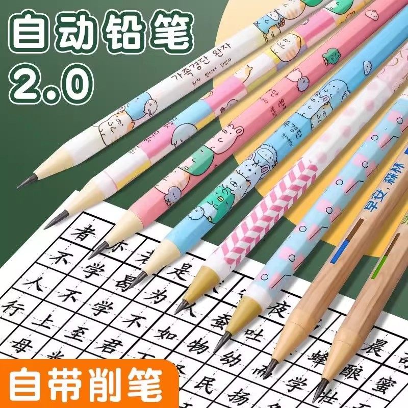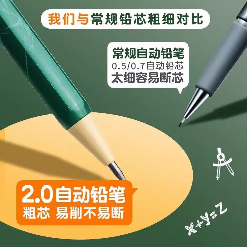自动铅笔2.0mm粗芯笔芯按动式小学生用HB木铅笔写不断2mm笔芯文具