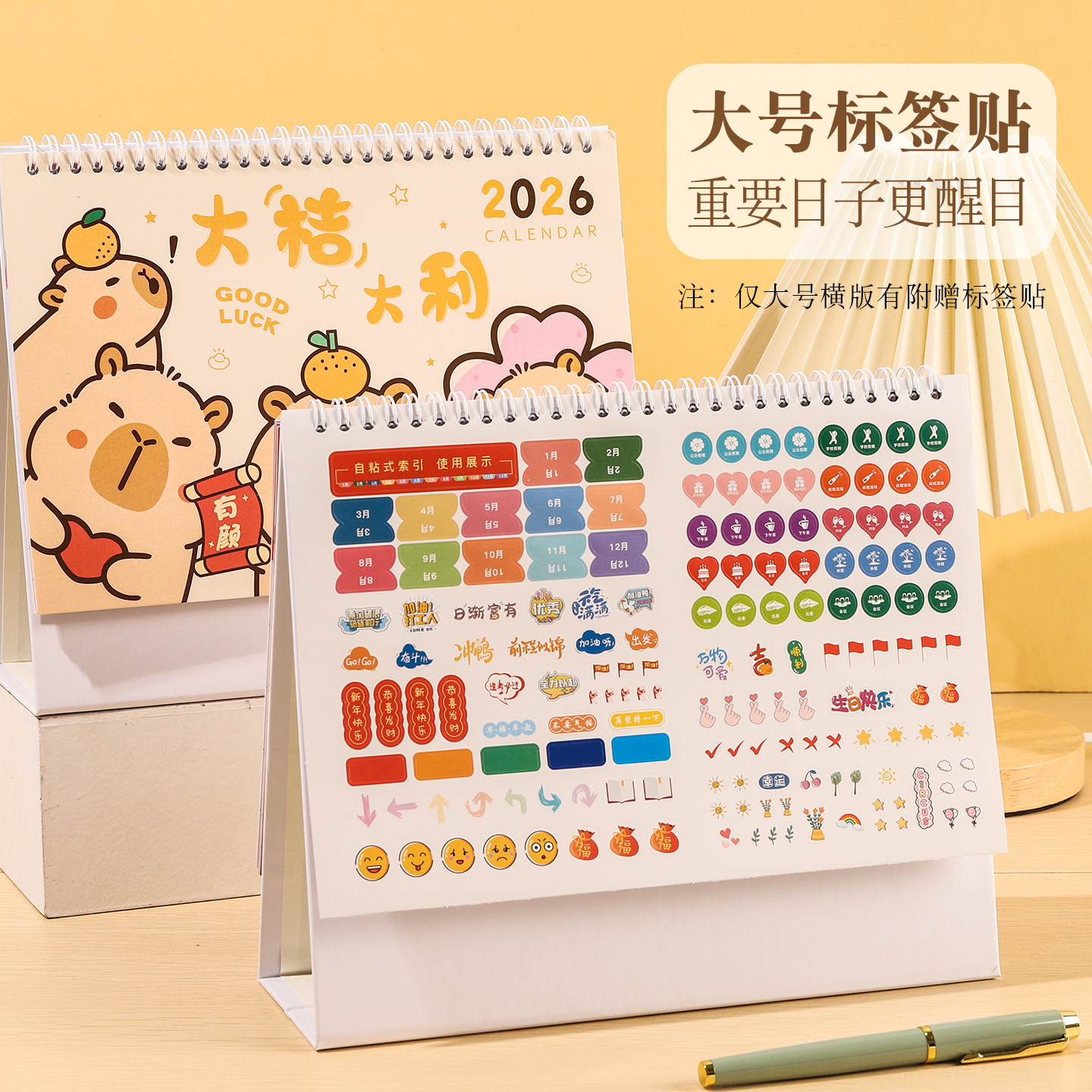 2026年新款台历创意卡通日历全年马年迷你小台历桌面摆件办公室学生每日计划表工作自律打卡记事mini计划月历