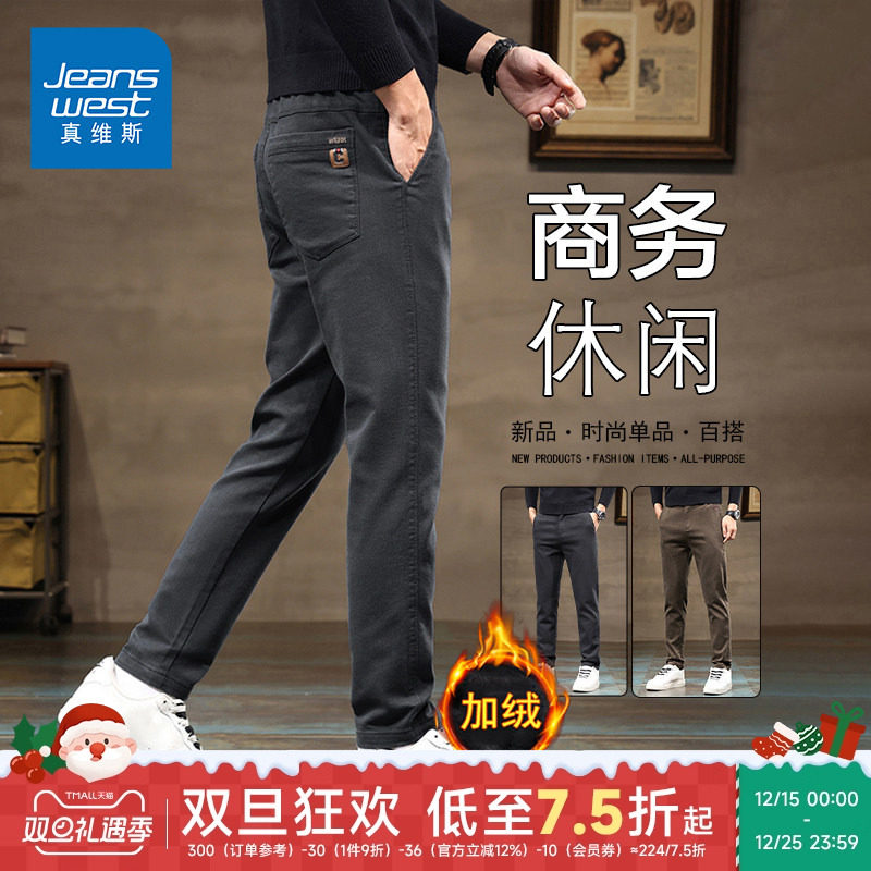 KP真维斯2025休闲裤男潮流百搭商务男士新款直筒冬季保暖加绒长裤