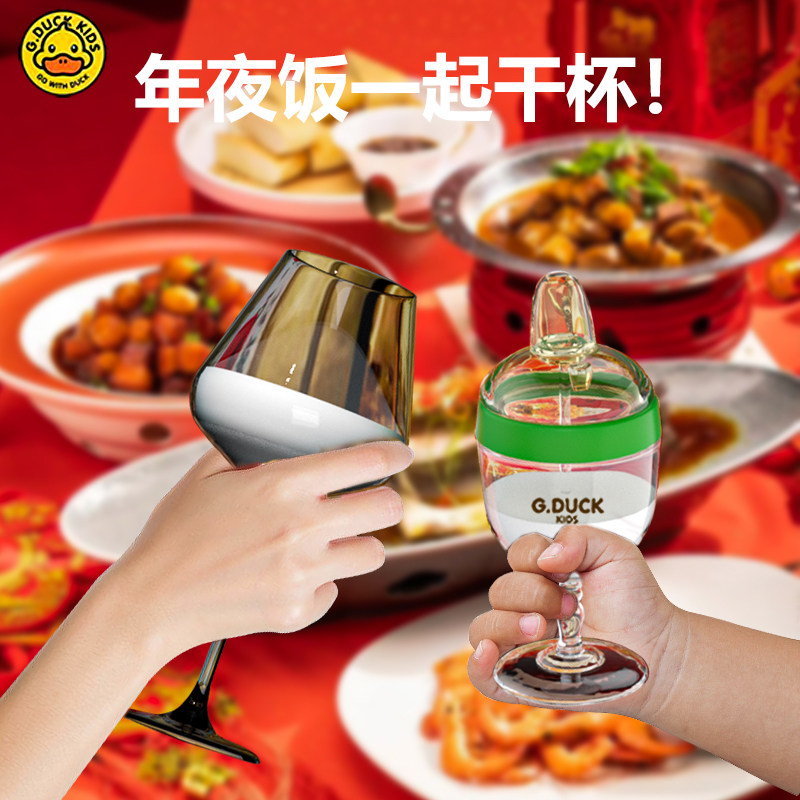 儿童高脚杯学饮杯鸭嘴宝宝喝水家用牛奶杯直饮果汁酒杯式奶瓶