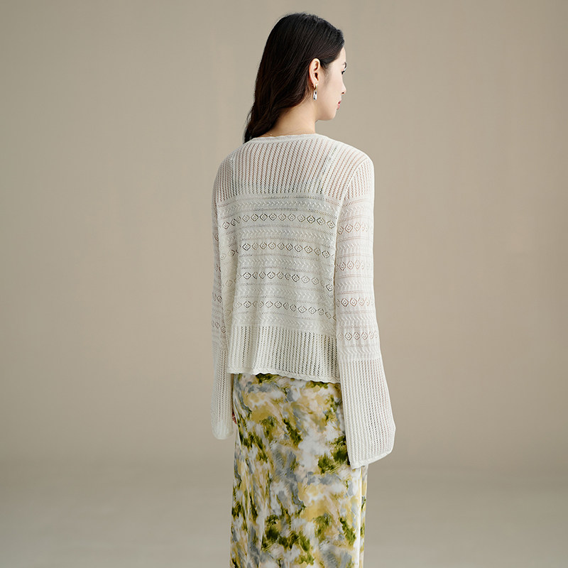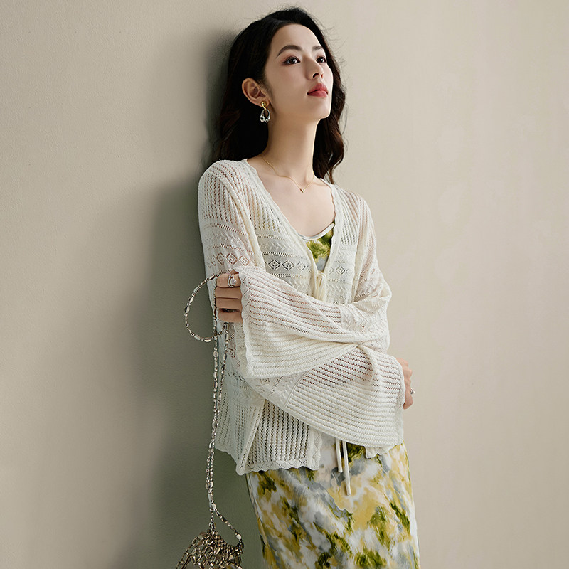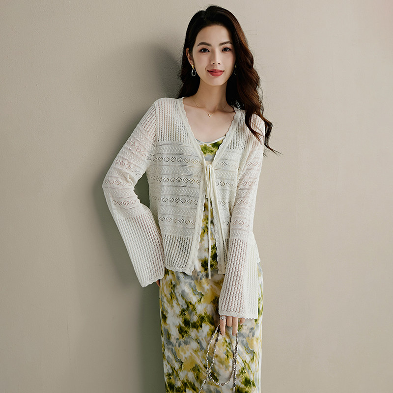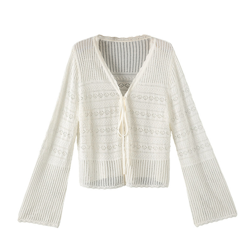 晚白2026年春新款镂空系带上衣慵懒随性大码百搭针织开衫女