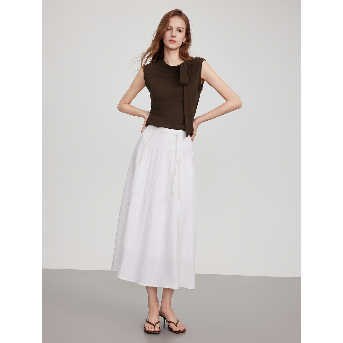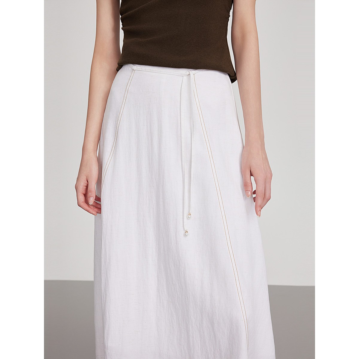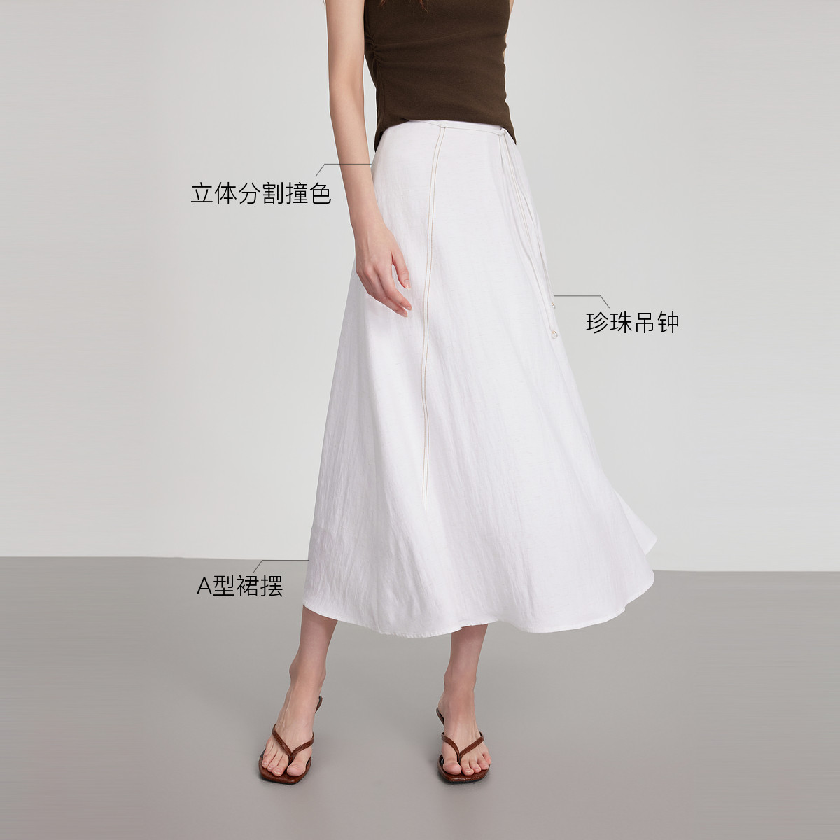 ELLE米白色垂坠感亚麻半身裙女2025夏季新款老钱风天丝休闲a字裙