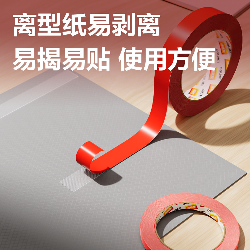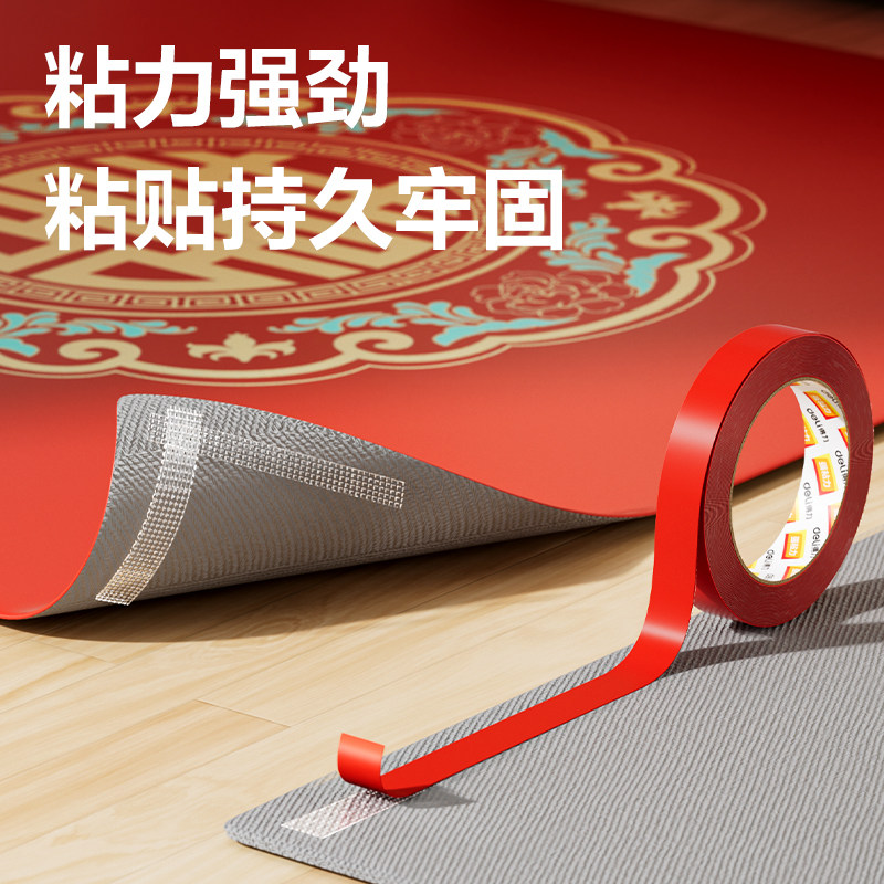 得力贴春联对联双面胶带撕下不留痕迹红色网格布基双面无痕胶布婚庆婚房装饰气球喜字福字年画高粘度强力固定