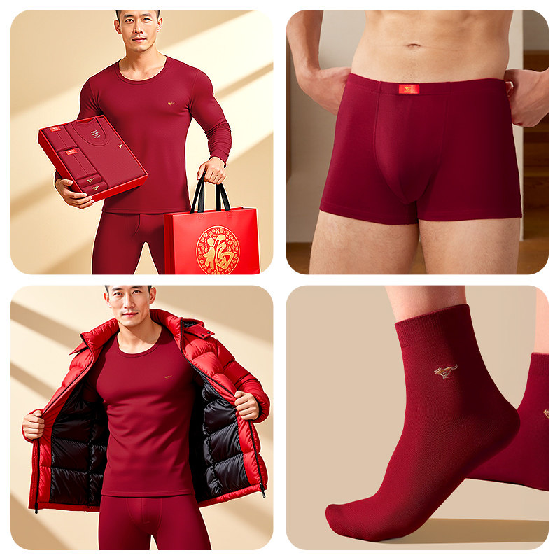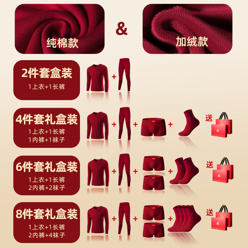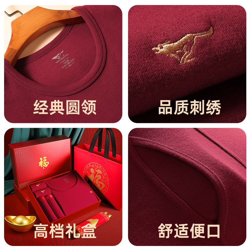 七匹狼本命年红保暖内衣男礼盒装送人秋衣裤全棉毛衫内裤上衣袜子