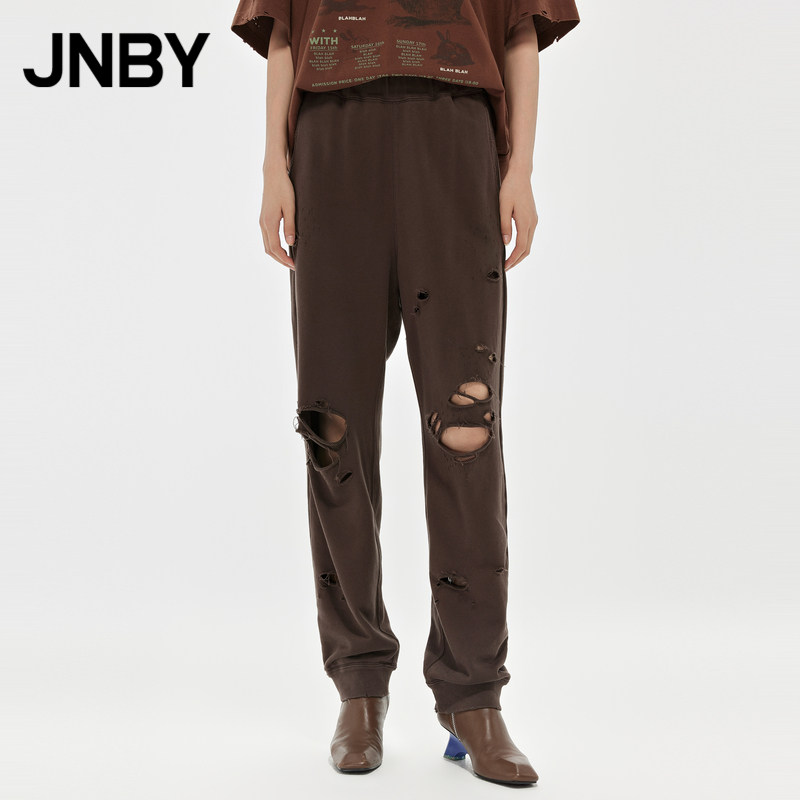 JNBY/江南布衣折扣秋冬束脚裤宽松破洞乞丐风九分裤通勤高腰女