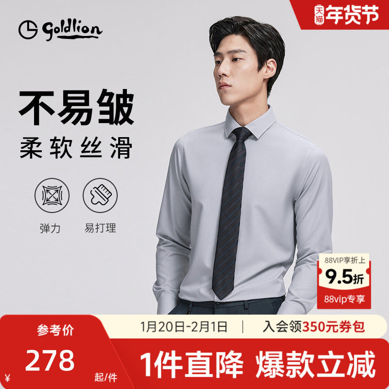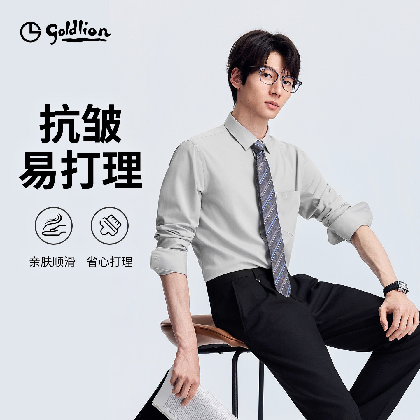 【云感衬衫】金利来春夏新款莫代尔弹力抗皱男士商务长袖白色衬衣