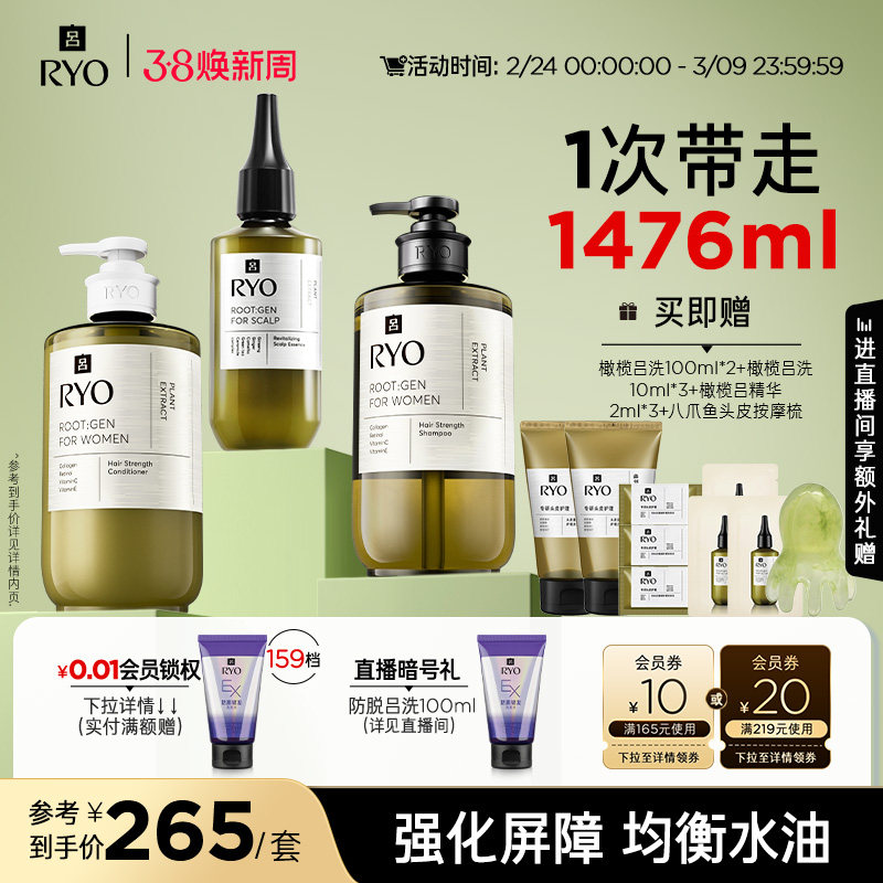 【38抢购】RYO橄榄吕洗发水头皮精华液蓬松洗发露护发素护发乳