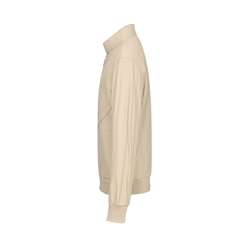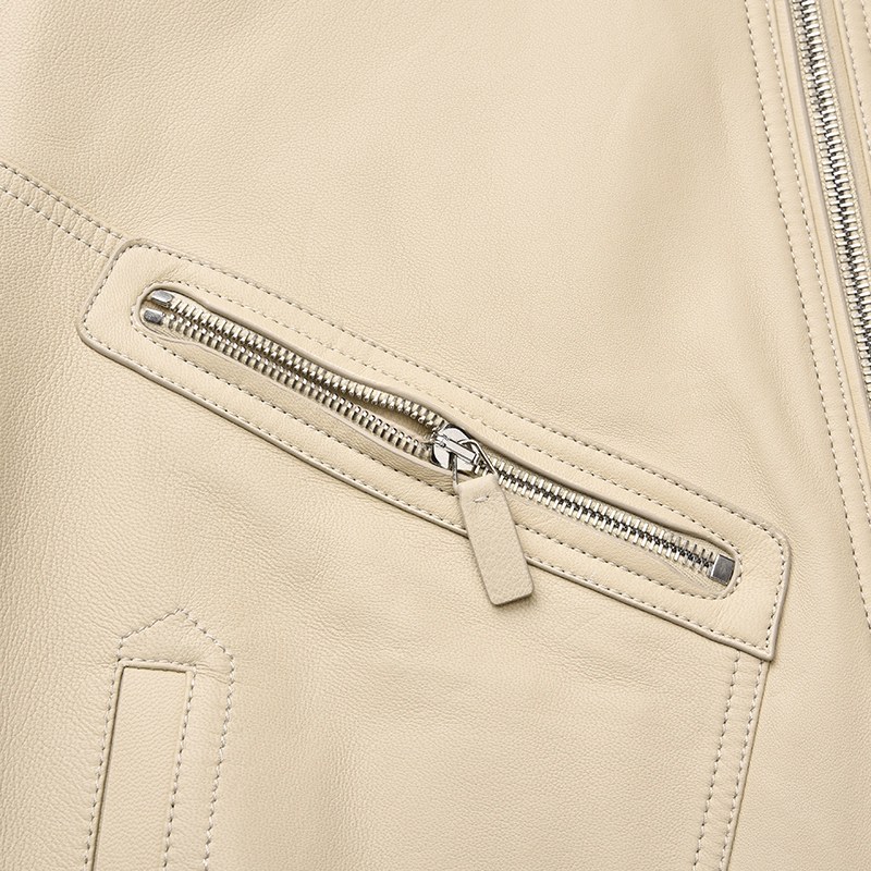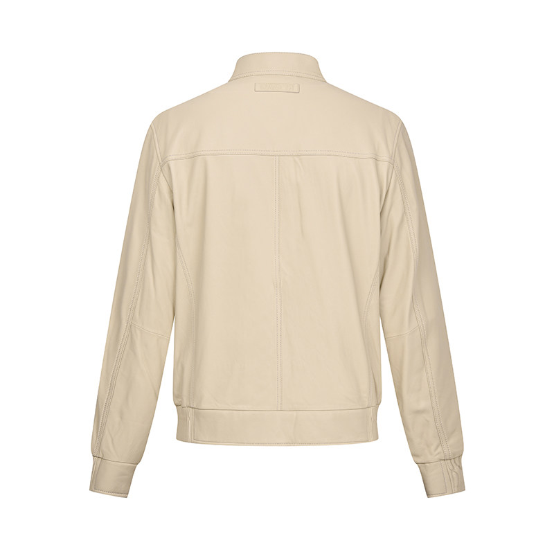 RARE威雅男装 机车款夹克外套男士秋冬新款米色立领时尚真皮皮衣