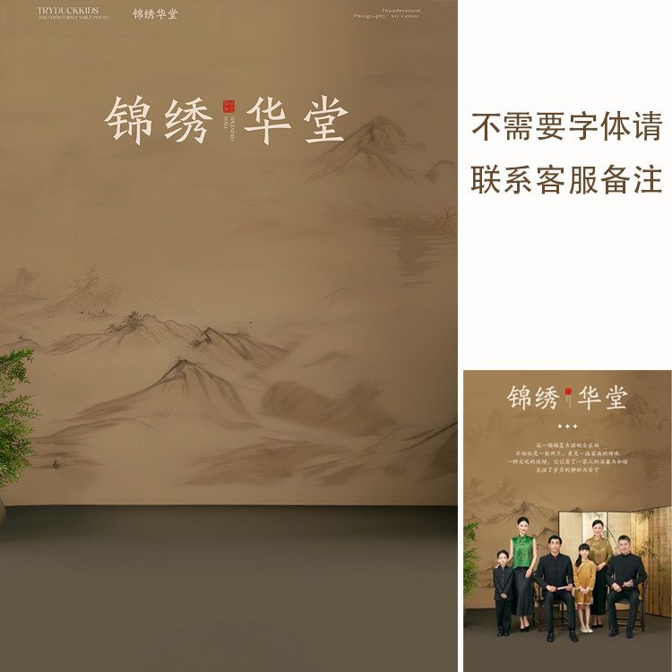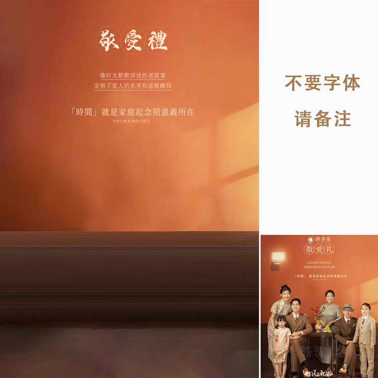 油画风春节全家福摄影背景布影楼中式复古旗袍中国风民国拍照背景