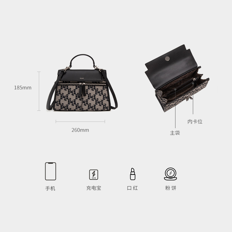 ELLE女包2025新款包包经典老花凯莉包秋冬手提包单肩包通勤百搭包