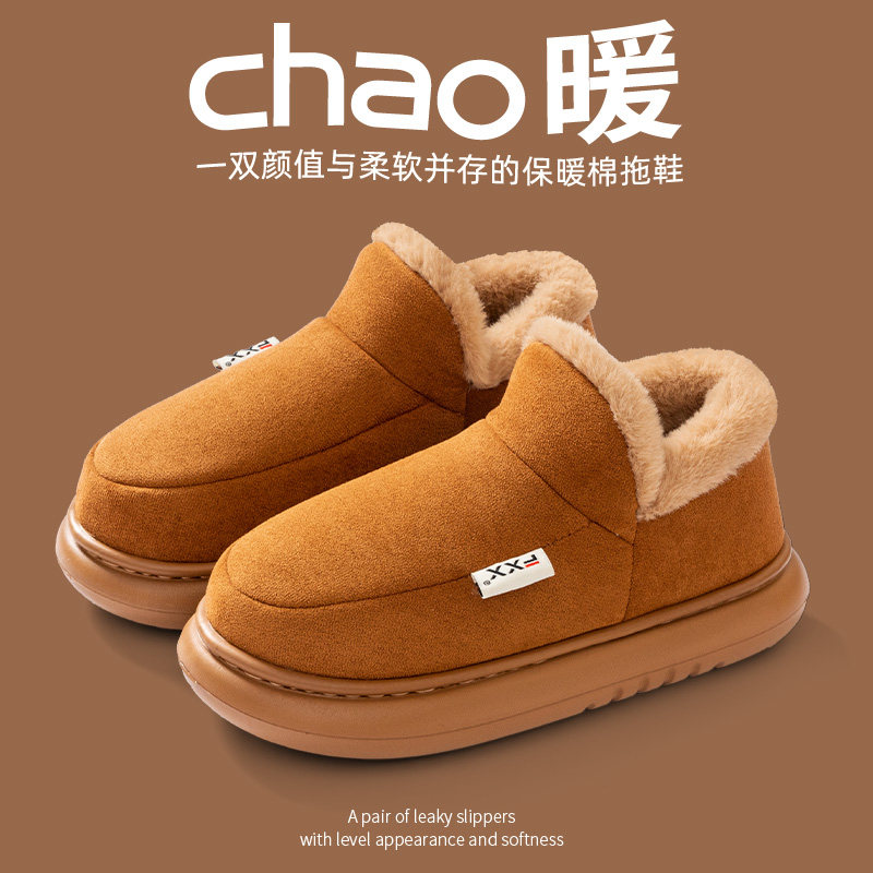 朴西棉拖鞋女士秋冬季厚底简约保暖室内居家用软底防滑情侣棉拖男