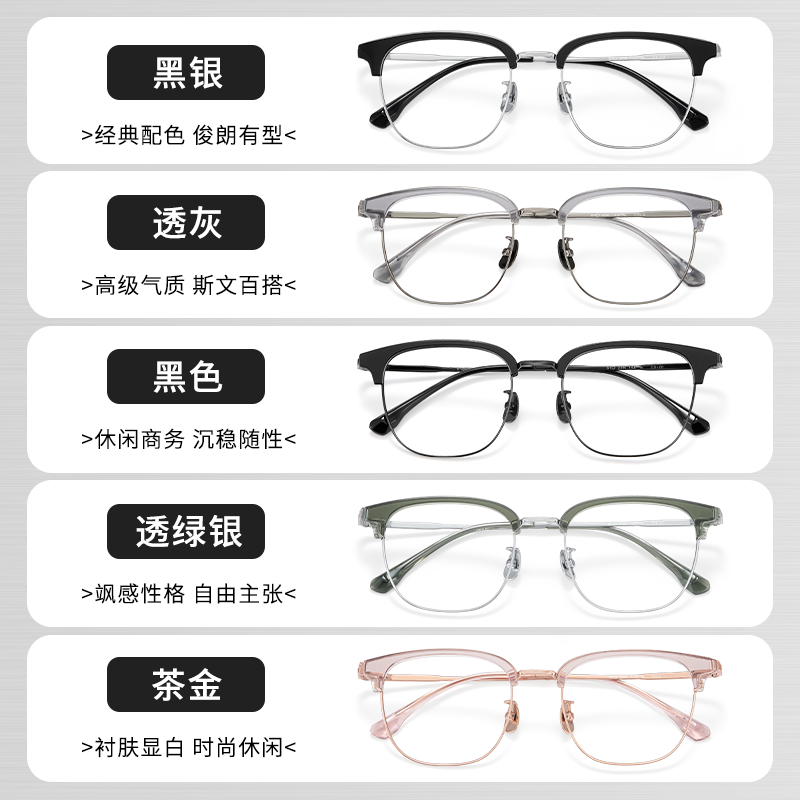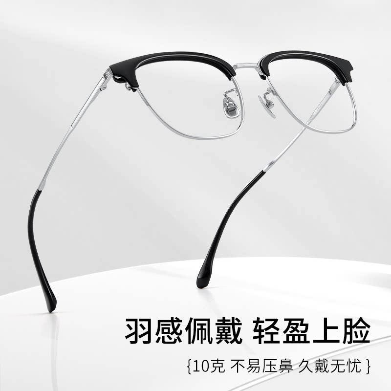 久森眼镜框近视眉线半框超轻纯钛镜架配防蓝光辐射镜片T98722