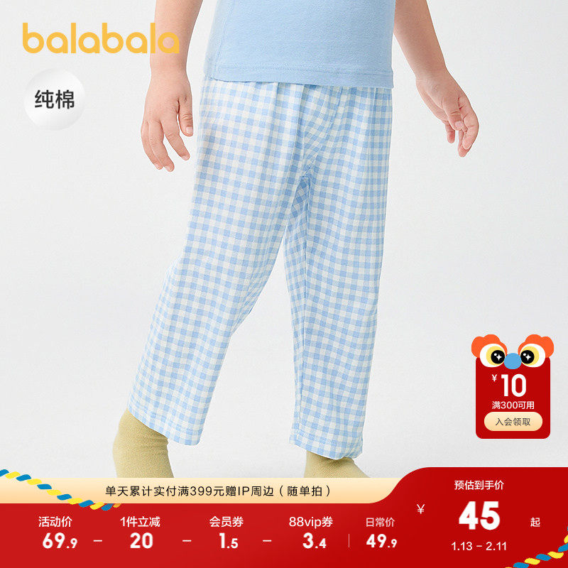 巴拉巴拉儿童睡裤夏季防蚊裤儿童家居裤男女童裤子中大童纯棉格纹