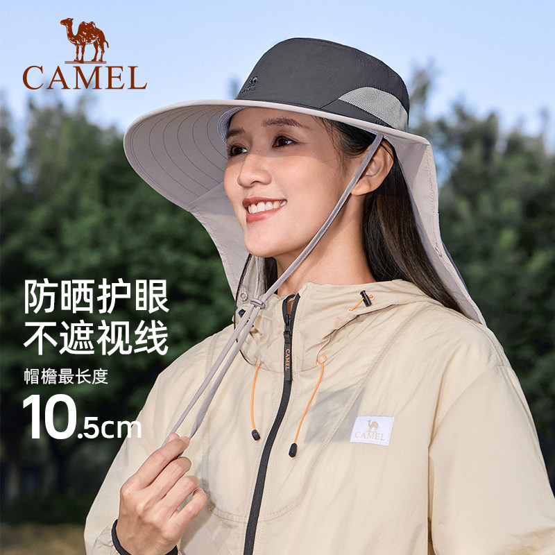 骆驼渔夫帽女防紫外线防晒帽子男全脸遮阳钓鱼帽大帽檐户外登山帽