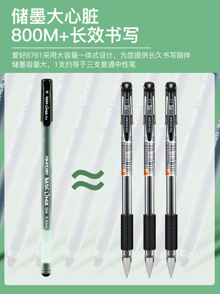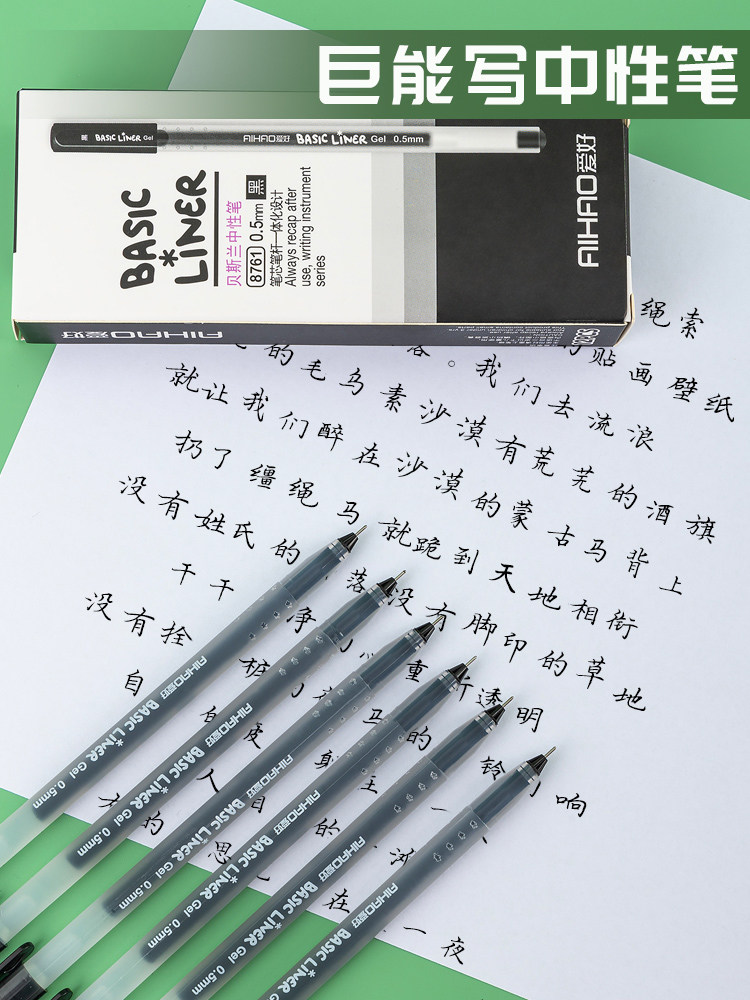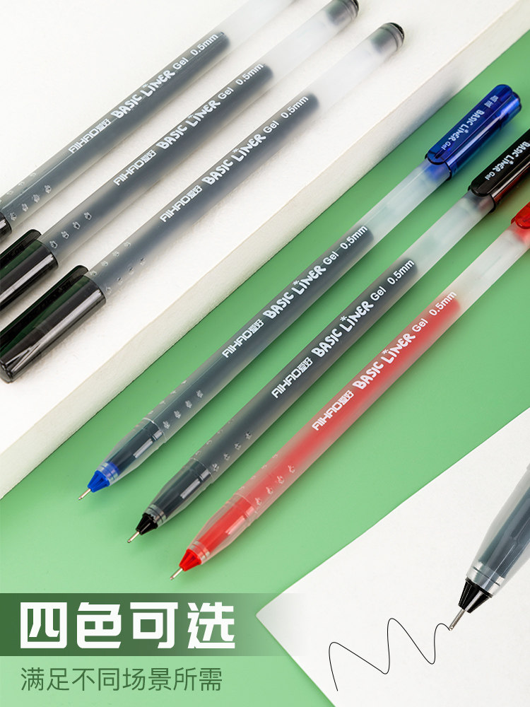 爱好巨能写全针管中性笔大容量签字笔直液式黑0.5学生考试刷题笔
