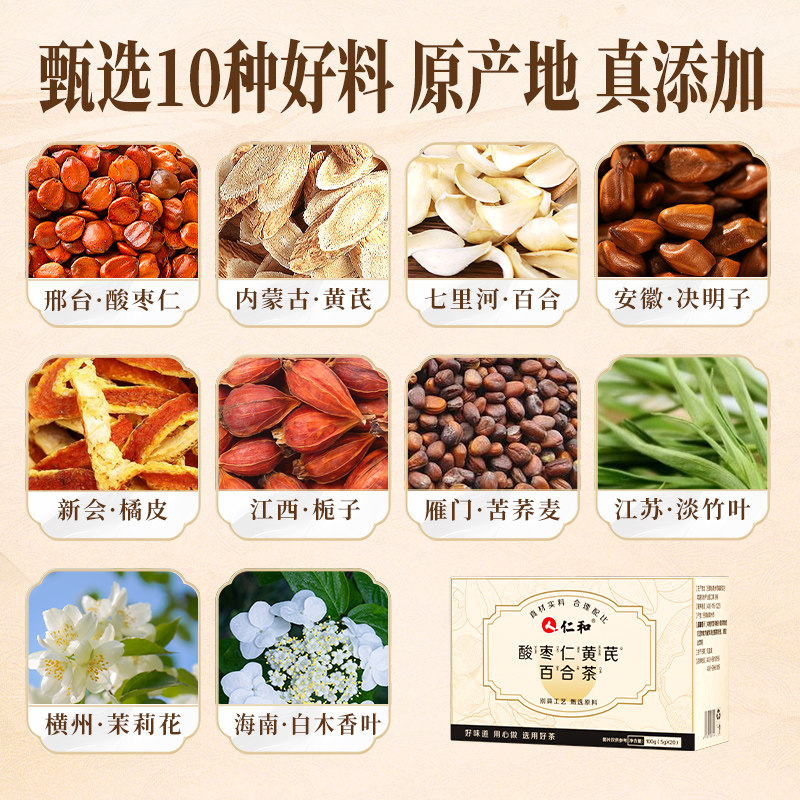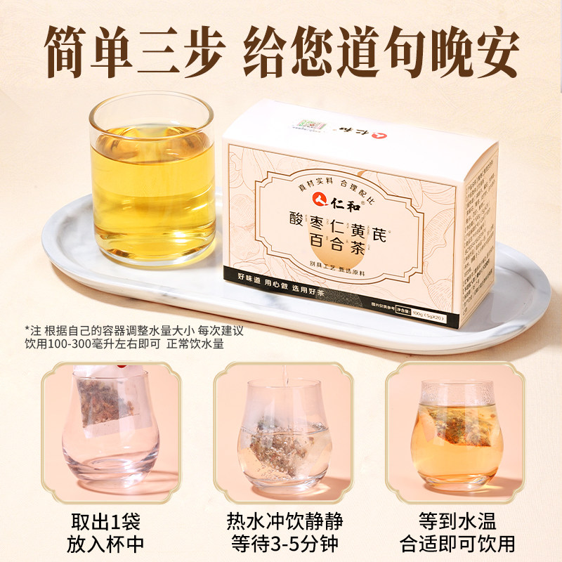 仁和酸枣仁茯苓百合茶睡眠多梦助睡眠差正品养生茶x胖大海国货