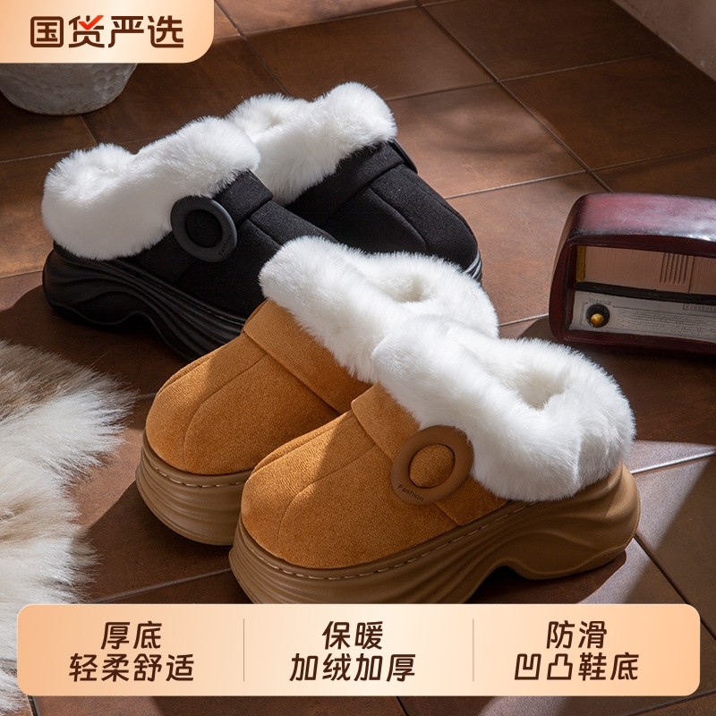 秋冬季2025新款翻半包跟棉拖加绒保暖情侣外穿毛毛绒厚底防滑居家