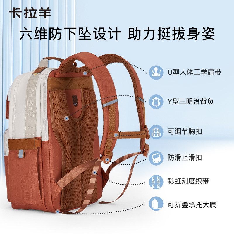 卡拉羊云朵书包中学生女减负防下坠大容量背包男新款双肩包常青藤系列