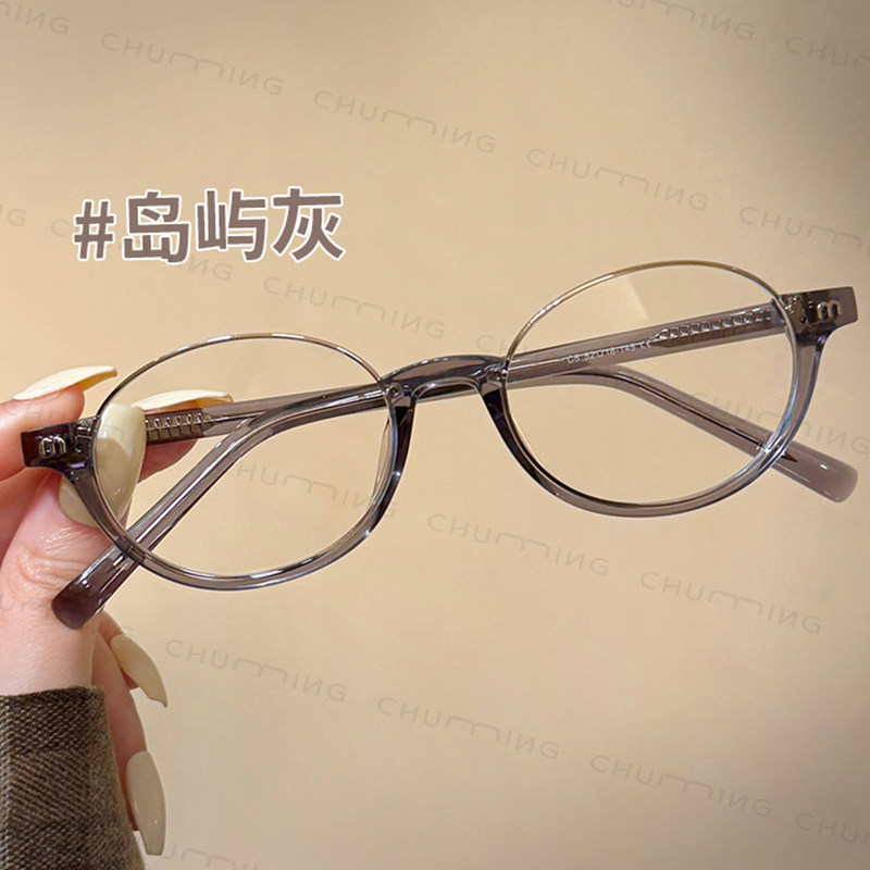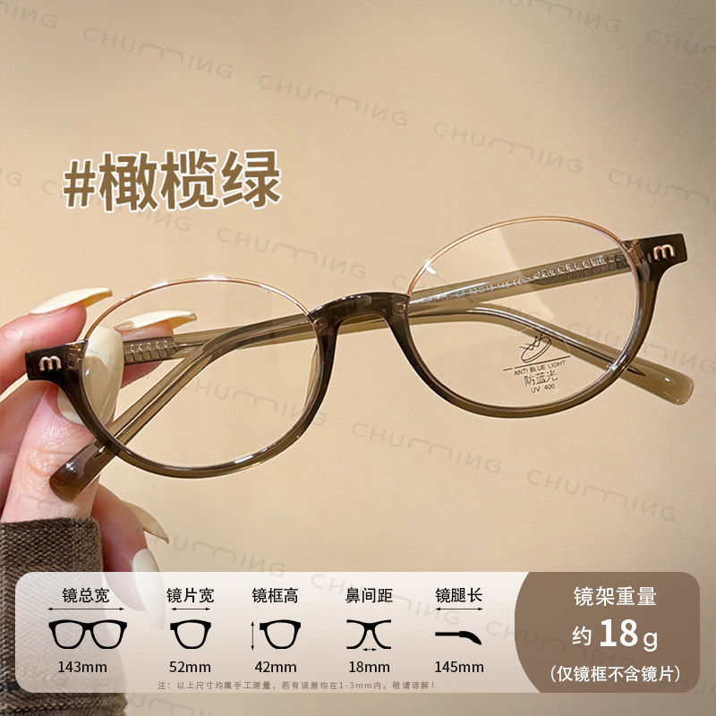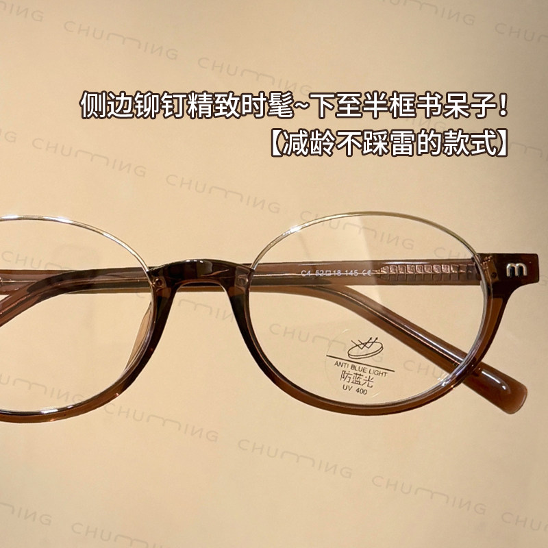 缪系栗子茶色椭圆下半框眼镜近视女可配有度数方圆脸书呆子眼睛架