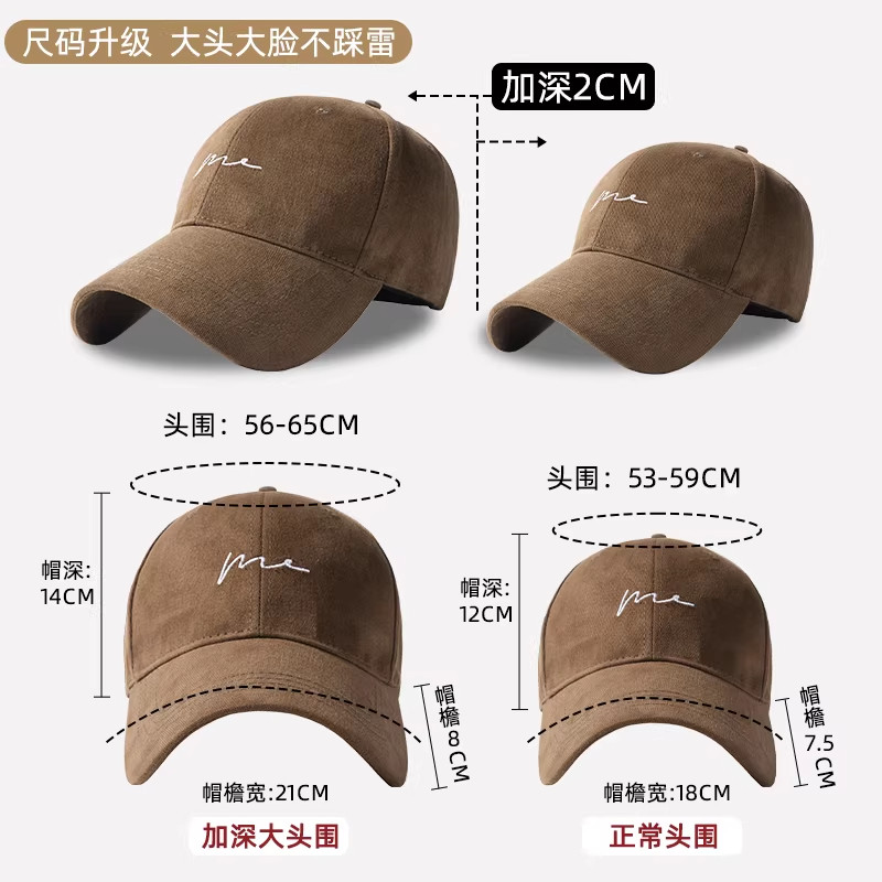 美式复古字母灰色棒球帽女高级感宽檐大头围显脸小百搭鸭舌帽子男