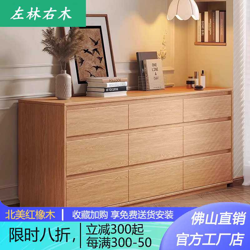 橡木实木床尾三六九斗柜客厅现代简约带抽屉卧室靠墙储物大容量