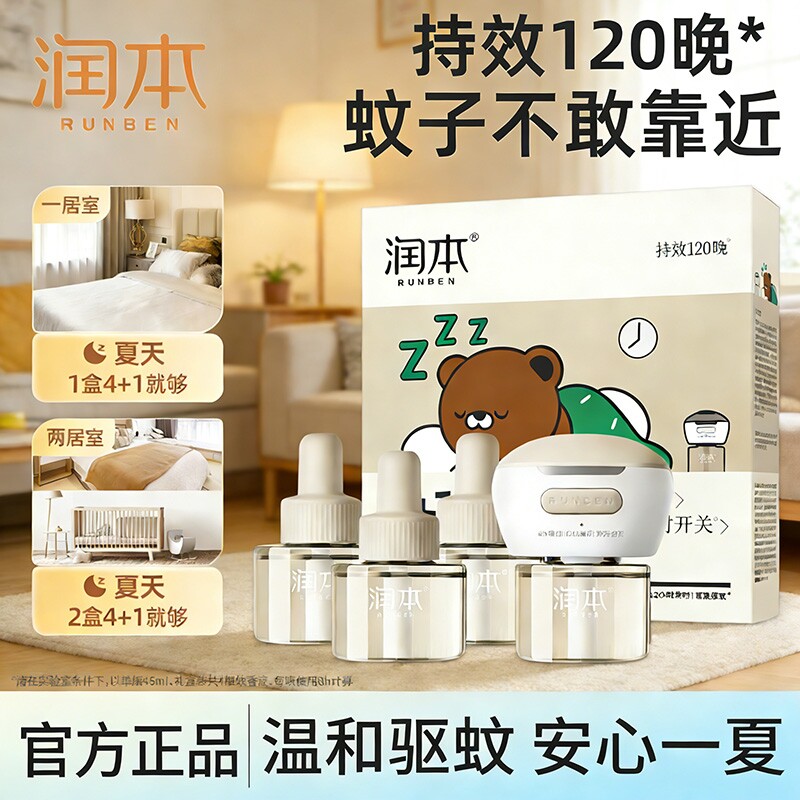 润本电热蚊香液定时驱蚊器卧室内家用防蚊灭蚊无烟驱蚊液补充装