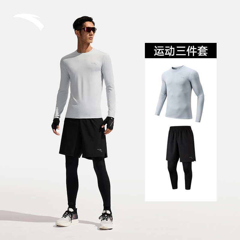 安踏运动套装男款2026吸湿速干运动三件套弹力透气跑步训练服