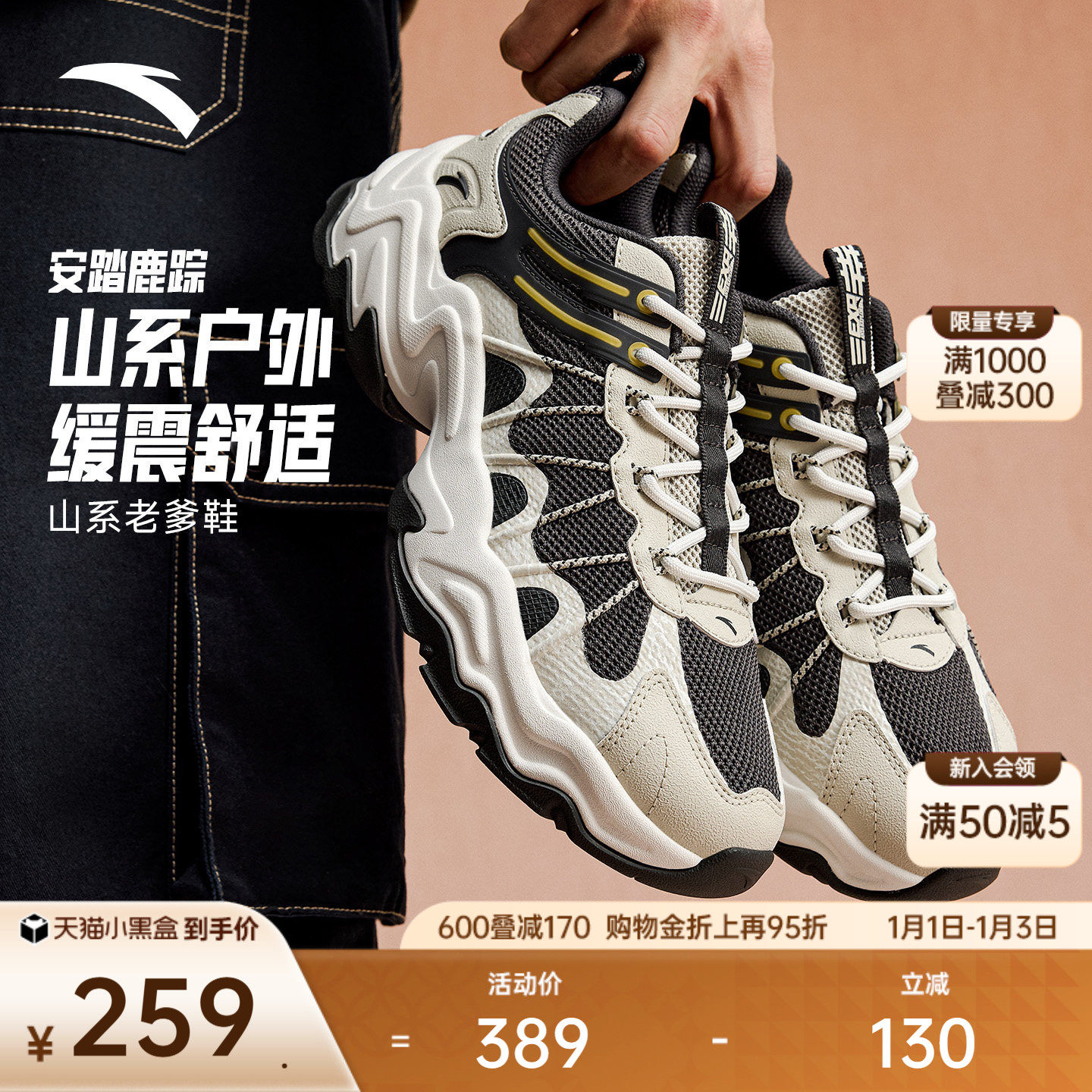 安踏鹿踪丨山系户外风休闲鞋老爹鞋男2025冬季新款越野穿搭运动鞋