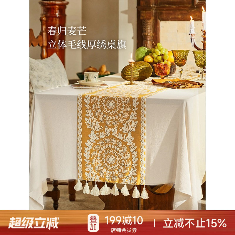蜡笔派春归麦芒桌旗餐桌轻奢高端法式复古禅意台布长条茶几盖布