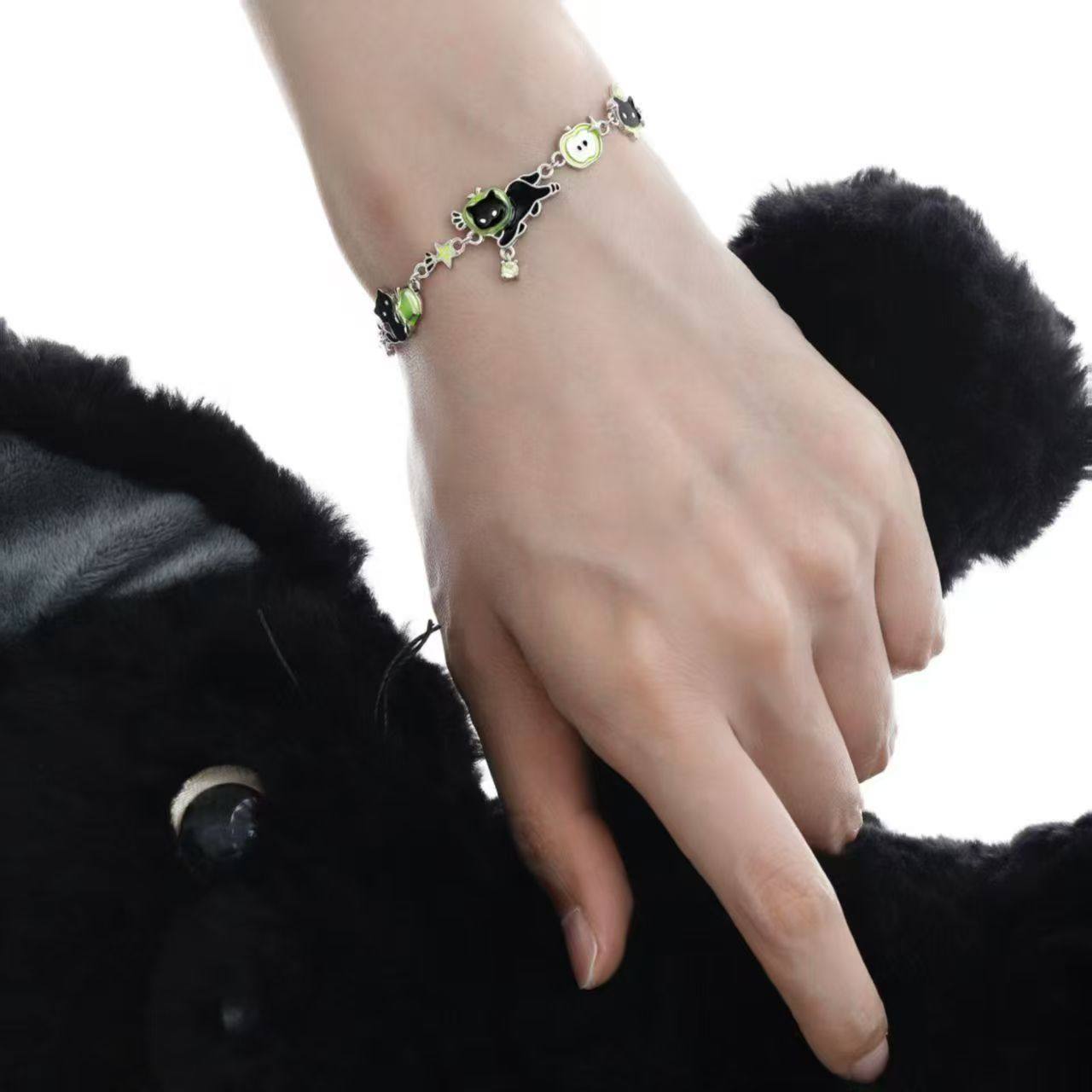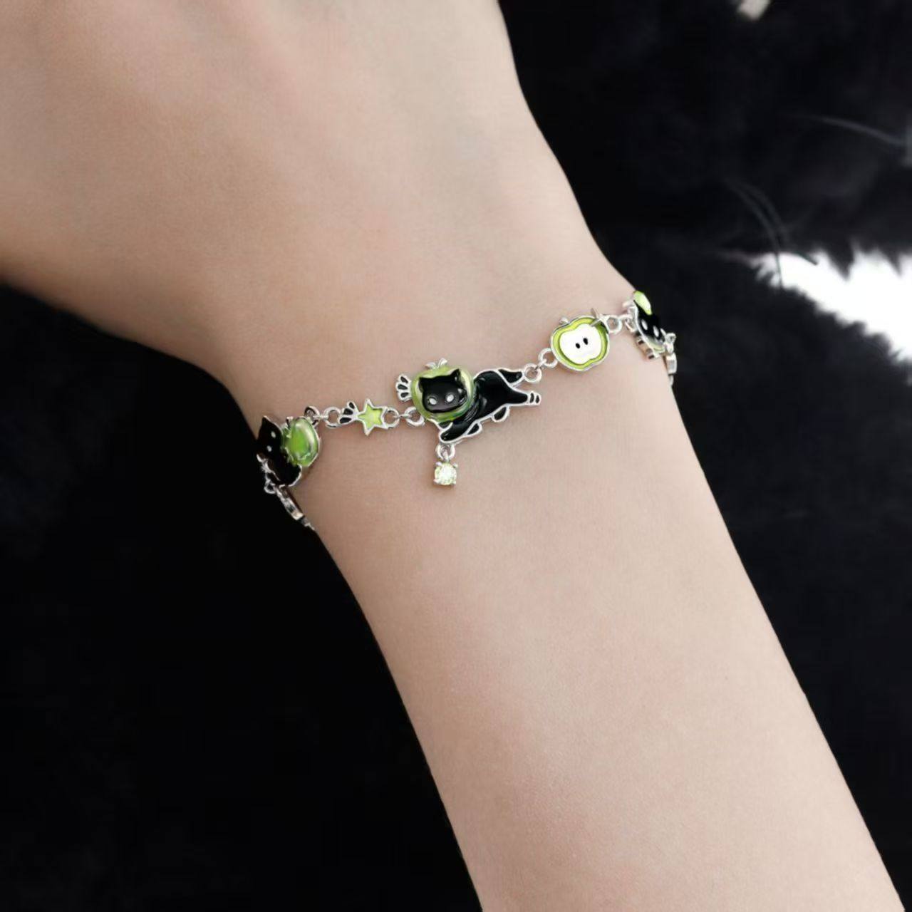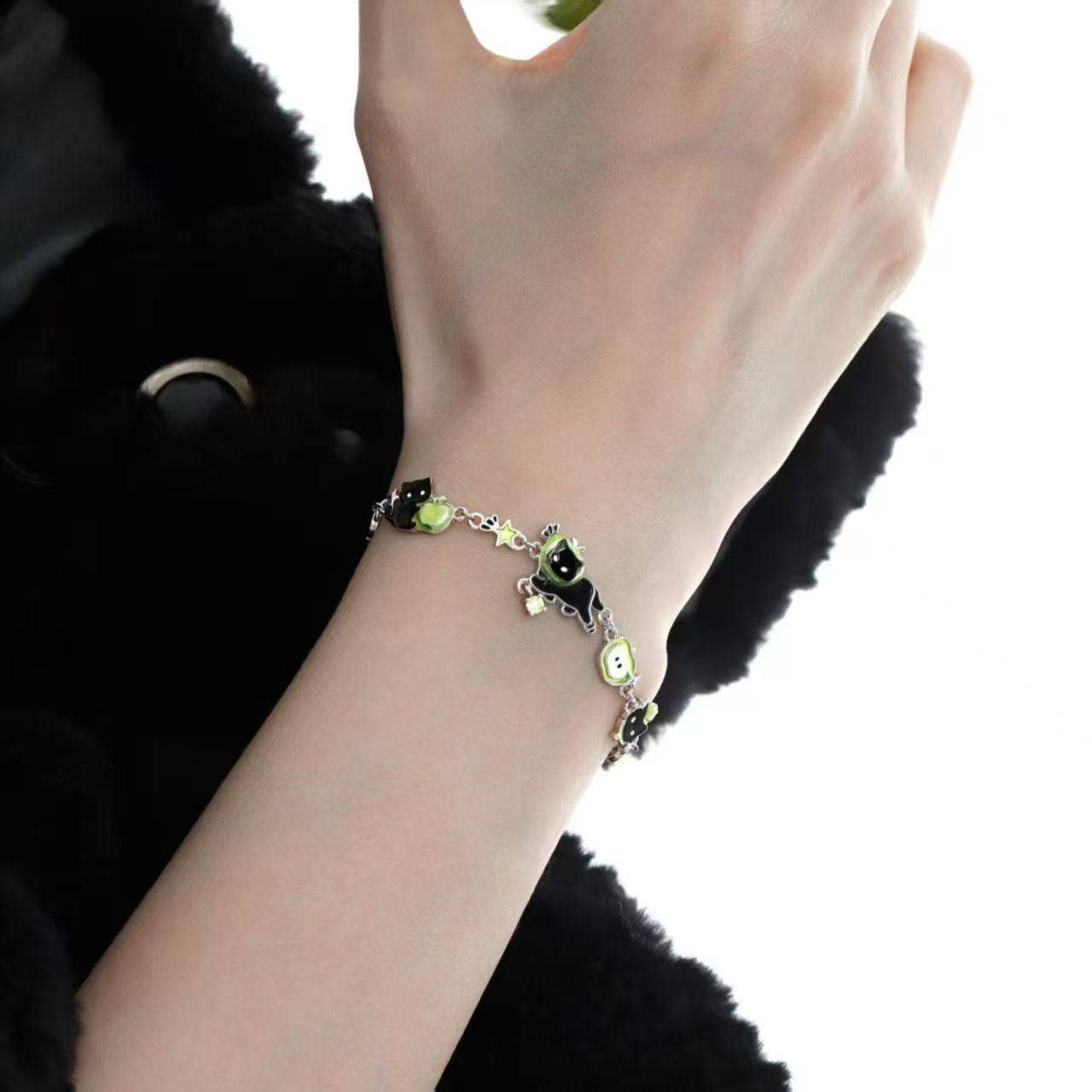 夏日新款敲可爱黑猫青苹果切片手链小众高级甜酷撞色手环小众手饰